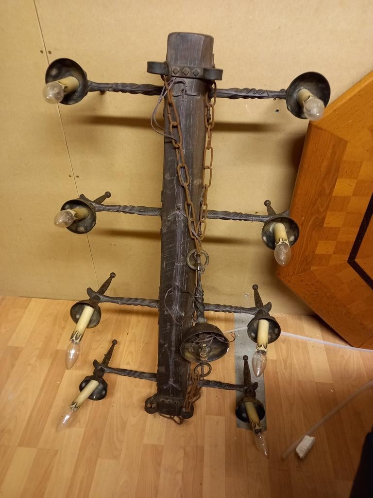 16 avr. 26kBleharies - Lustre en ferronnerieLustre ancien 4 branches fabriqué en ferronnerie autour d'un ancien rabot de menuisier (varlope)Utilisé Enlèvement