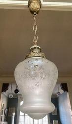 - Lustre - Verre - Suspension art nouveauSuspension art nouveau en verre dépoli, datant de 1910–1920, monture en bronze doré, ø25 cm, hauteur totale 75 cm (60 cm du plafond), poids 4 kg, en bon état d’usage.