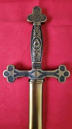 8 avr. 26IsabelleMacon - Epée Franc-Maçon - France - 2000-2010épée maçonnique authentique provenant de france, lame en acier ornée de motifs symboliques, longueur totale 86 cm, avec étui d’origine, état excellent, période estimée 2000–2010.