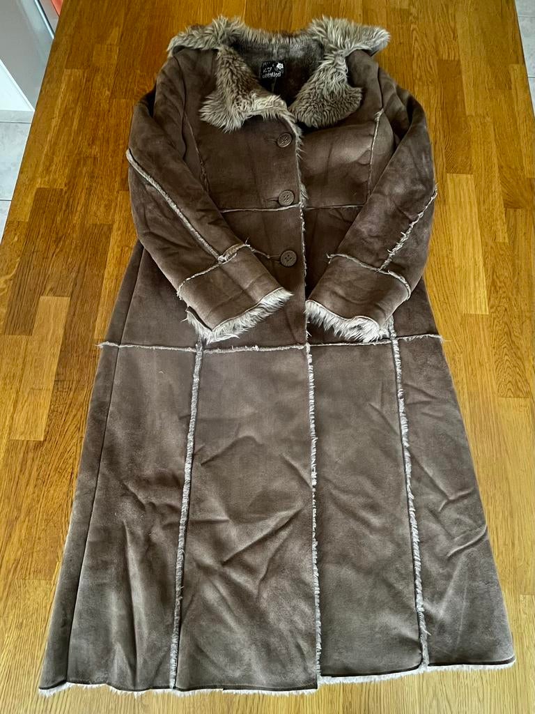 1 mars 26CathNamur - Manteau longue ,femme ,marron en fausse fourrure de laineManteau longue ,femme ,marron, en fausse fourrure de laine neuf jamais été porté très élégant 😍 taille l pour un effet oversize ( c'est plutôt une taille unique qui convient pour tous le monde ✨Neuf Enlèvement