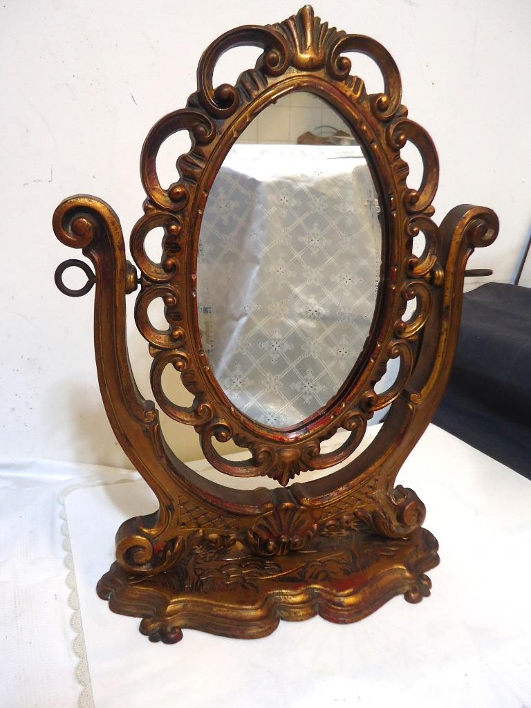 - Miroir Coiffeuse miroir H 40 maquillage Victorien ✨😍🤗🎁👌Magnifique miroir de table vénitien, miroir de coiffeur avec cadre en bois dans son support. Très belle couleur antique, patine avec des tons dorés et élégant style art nouveau. Fabriqué en italie depEnlèvement ou Envoi