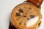 22 janv. 24CatawikiToute la Belgique - Chronographe Suisse - Vintage 18 kt. 750 Yellow Gold - SansChronographe suisse vintage or jaune 18 kt 750, montre-bracelet, boîte 36 mm, longueur totale 23 cm, mouvement à remontage manuel, bracelet en cuir, période 1970–1979, en bon état avec usures visibles