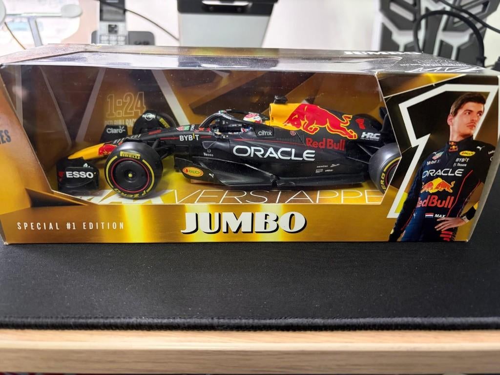 - Jumbo Red Bull RB13 1/32 édition limitée Max VerstappenVendez-le parce que j'en ai deux. L'état est presque parfait. Le plastique n'est que légèrement endommagé (voir dernière photo).Comme neuf Enlèvement ou Envoi