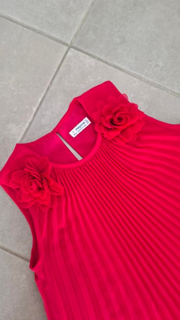 9 juin 25PimkieKinrooi - Plissé Jurkje Speciale Gelegenheden. Meisjes. 7jaar(122).Perfecte staat. Merk:mayoral. Communie/lentefeest. Geplooid lijfje, vloeiende pasvorm. Comfortabele onderjurk. Roos-applicatie schouders. Fuchsia-rose. Lengte 63cm.Enlèvement