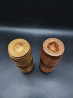 30 mars 26Hinde KaddouriBruxelles - Boîte (2) - Bambou - Porte-médicamentDeux porte-medicaments en bambou, originaires dor indonesia, datés des années 1960, d hauteur environ 15,5 cm et 14,5 cm, largeur et profondeur d 5,5 cm, en état usé avec probables petites pieces m