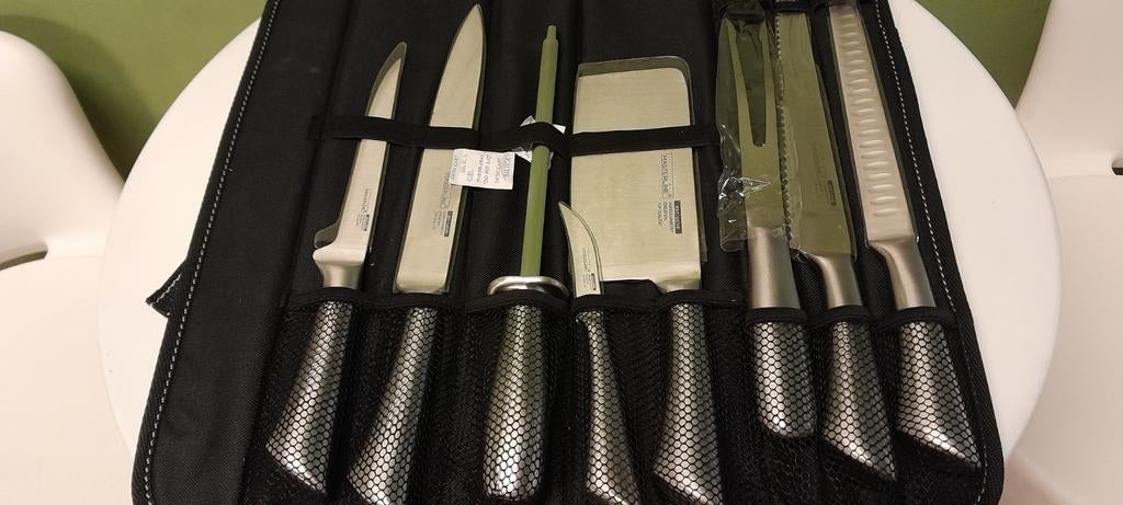 9 janv. 26TinneBerlaar - 9-delige messenset Masterline exclusive edelstahlGeheel nieuwe, 9-delige messenset van het kwaliteitsmerk masterline, authentic master cooking, vervaardigd uit roestvrij staal. Alles zit nog in de originele verpakking, inclusief een mooie opbergkoffEnlèvement