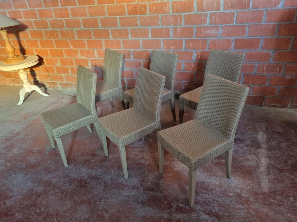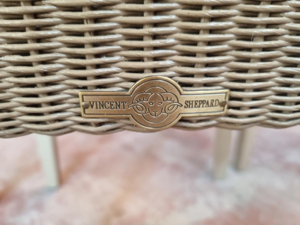 26 mars 26PBMortsel - "Vincent Shepard" heel bijzondere stoelen.Mooi lot bestaande uit 6 originele stoelen van vincent sheppard, uitgevoerd in gevlochten riet / lloyd loom in een lichte, neutrale tint. De stoelen hebben een tijdloos en elegant ontwerp en zijn voorComme neuf Enlèvement