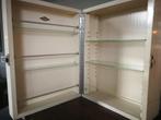 - meuble de pharmacie vintage des années 60'Meuble de pharmacie vintage des années 60' · tablettes intérieures d’origine en verre, ajustables en hauteur · tablettes également dans la porte · patine d’origine, couleur blanc cassé · cylindresEnlèvement