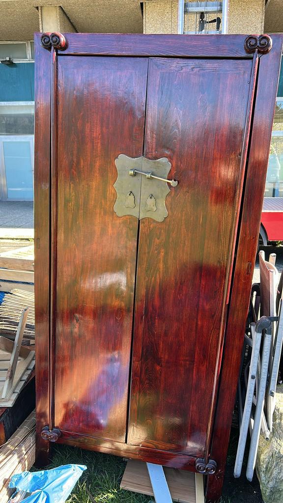 20 oct. 19Lezend uiltjeGent - Armoire "de mariage" chinoise rougeAncienne armoire de mariage chinoise de couleur rouge pour rangement mesures: h 1,73 cm x l 1,04 cm x p 0,61 cmEnlèvement