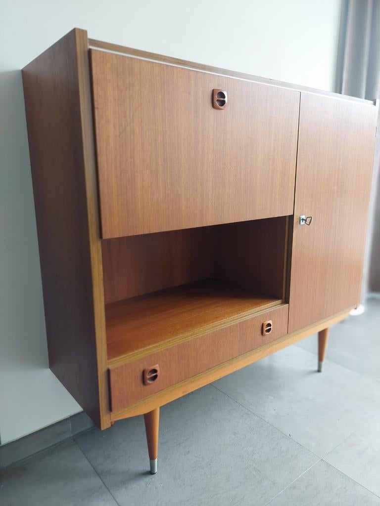 10 mars 26B-artGent - Buffet vintage, buffet, danois #2Magnifique buffet, buffet ou meuble de bar vintage en teck (solide/placage). Du danemark 🇩🇰 le meuble dispose de 4 portes coulissantes avec un meuble bar avec un mur en miroir sur la gauche, une étaUtilisé Enlèvement ou Envoi