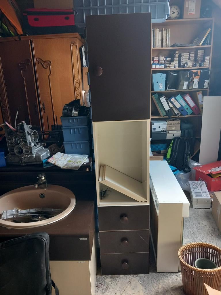 12 mars 26Vide grenierChatelet - Meuble besta double colonneMeuble besta blanc au finis mate. Double colonne accompagné de ses 6 portes plus tout ses plateaux. Grande capacité de rangement et intérieur modulable selon l’usage. Bon état general quelques marquesUtilisé Enlèvement
