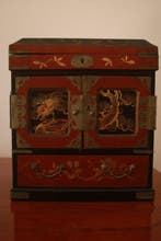 Aujourd'huiPub au topCatawikiToute la Belgique - Boîte à bijoux - Bois - ancien petit meublePetite coiffeuse ancienne en bois japonais, laquée et peinte de motifs floraux et animaux, datée 1930–1940, dimensions 24 × 21 × 10,5 cm, en bon état d'usage avec quelques signes d'âge.