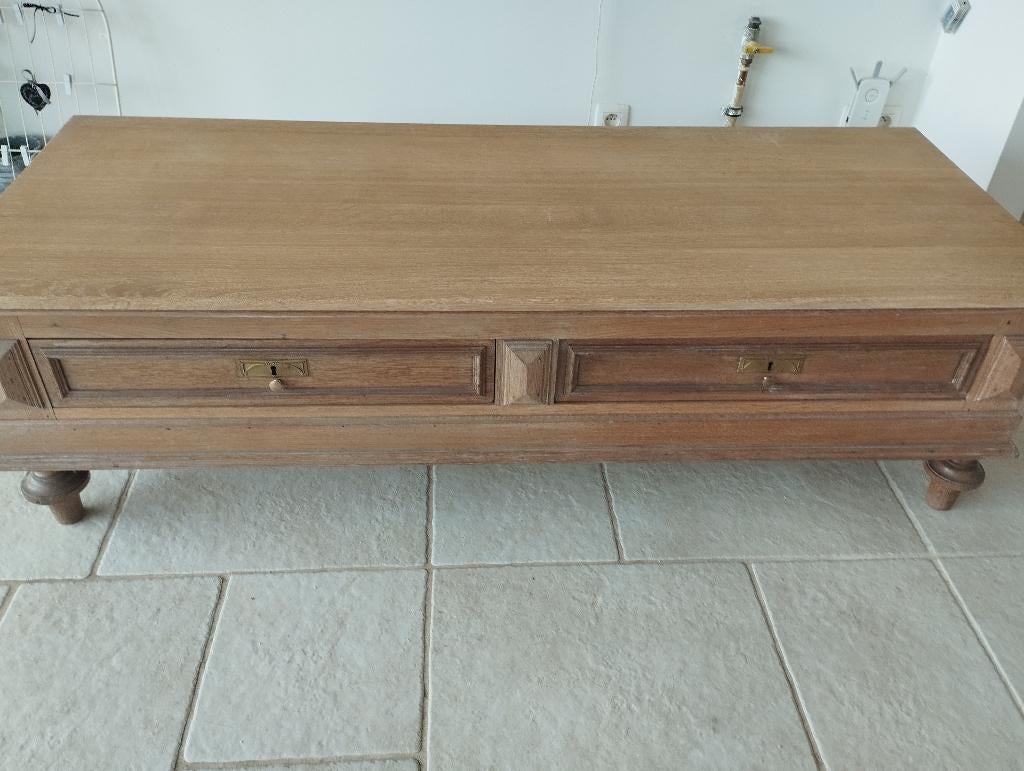 - meuble ancien transformeMeuble ancien transforme,chêne massif ,légèrement cérusé.l:1,60 ,l:62,h:42.deux tiroirs avec clefs .peut servir de meuble tvEnlèvement