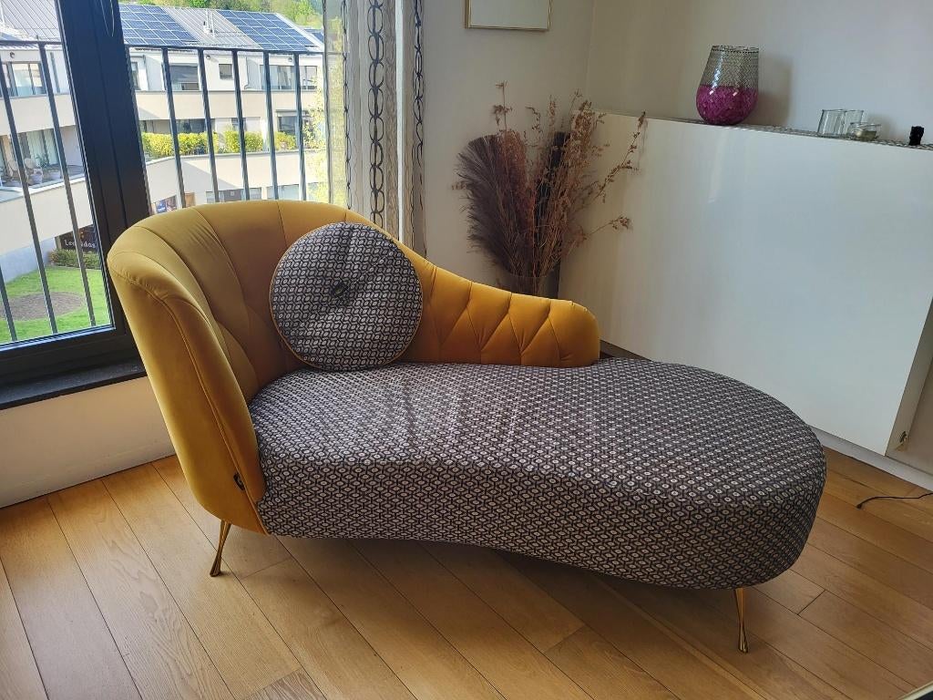 Aujourd'huiAnnonce au toppascalLanden - Chaise longue vintageOpportunité unique ! Très belle chaise longue avec un beau design/motif vintage et d'élégants pieds en laiton.Utilisé Enlèvement Deux personnes