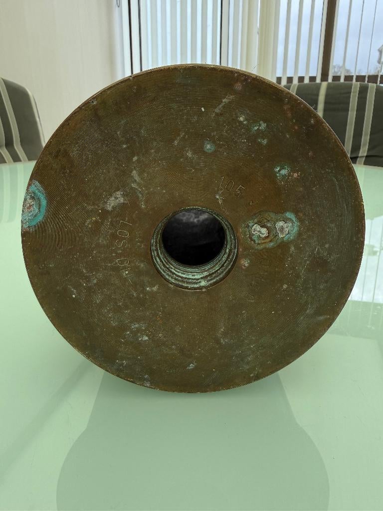 13 avr. 26PanzerTorhout - Obus huls ww1 18 pounder Groot BritangeIs leeg en ongevaarlijk. Jaar 1916 afmetingen diameter 8,5cm hoogte 29,5cmEnlèvement ou Envoi