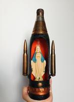 12 juin 24RaimonTernat - zeldzame grote WO1 trench art obus 1918 overwinning 50cmObus van oktober 1918 uit de patronenfabrik karisruhe. Sp255 d. Vrij naïef uitgesneden. Wat deze obus bijzonder maakt is de aangebrachte centrale plaque van koning albert 1. In zeer mooie staat. DiameEnlèvement ou Envoi