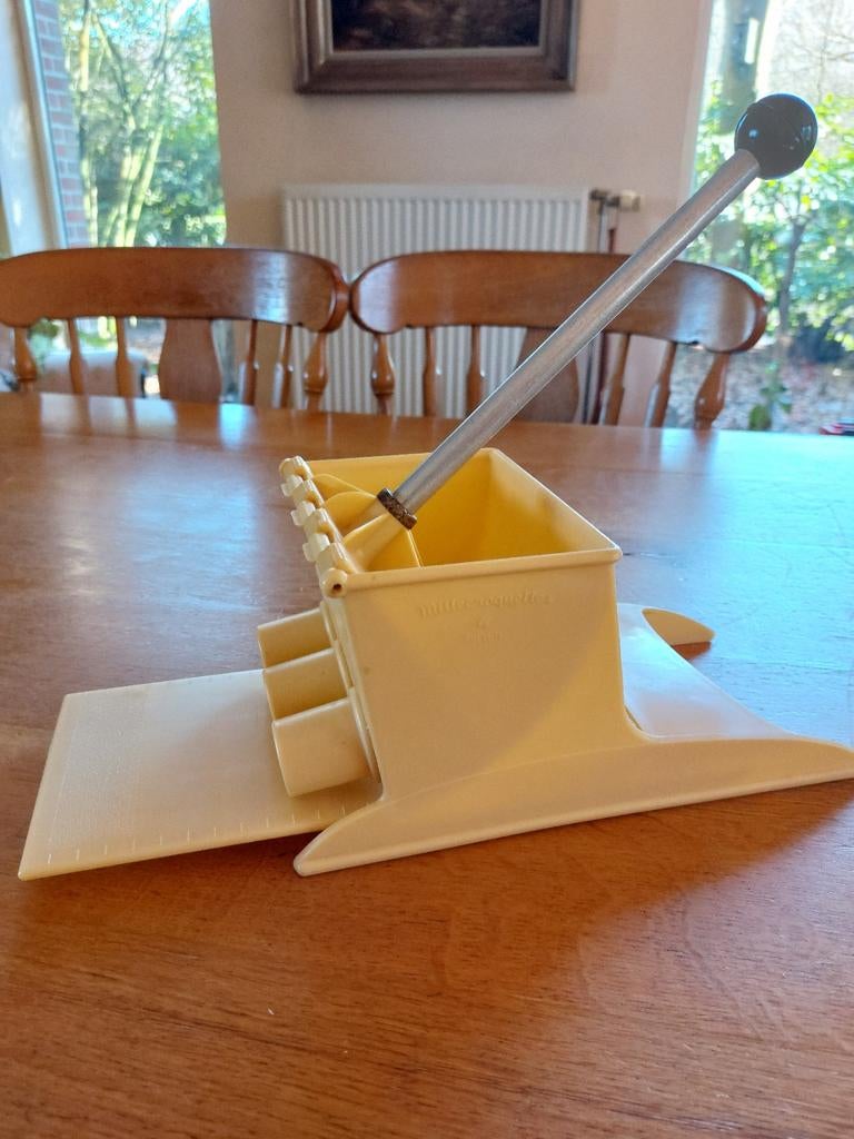 28 mars 26VintageretroSint-Katelijne-Waver - Kroketmaker MillecroquettesKroketmaker · merk: millecroquettes · materiaal: kunststof · afmetingen: 26,5 x 14,3 x h20 cm · met handleiding 5 euroUtilisé Enlèvement ou Envoi
