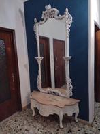Petit miroir lxvi avec sa console en bois doré en très bon état. Le miroir fait 36cm largeur et 49cm de haut, la console: 41cm largeur, 44cm hauteur, bien à vous