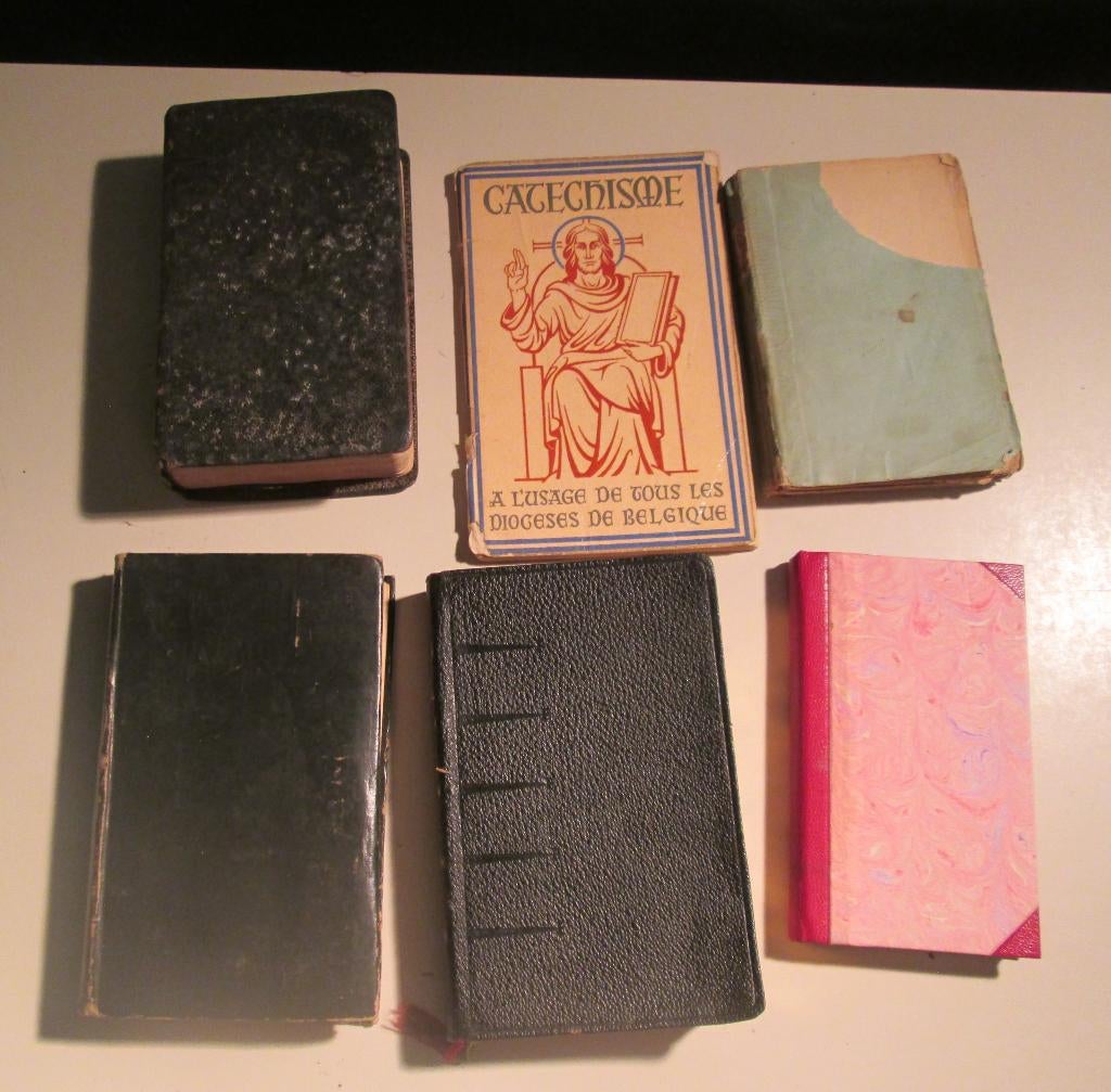 7 janv. 26SBOMiddelkerke - 6 vieux livres religieux français6 vieux livres religieux de langue française, dont le catéchisme, le nouveau testament, le missel vesperal, l'abrège de l'histoire sacrée, les arts de l'utiliser ses fautes, le missel vespUtilisé Enlèvement ou Envoi