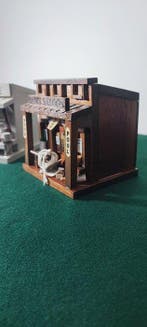 3 mars 26CatawikiToute la Belgique - Enesco - Enesco - Spaarpot (2) - KersenhoutTwee vintagestijl houtenobjecten van enesco, vertegenwoordigen sam's saloon en fish house, gemaakt van kerselhout, elk 15 cm hoog, 15 cm breed en 10 cm diep, circa 200 g; geproduceerd in italië, s