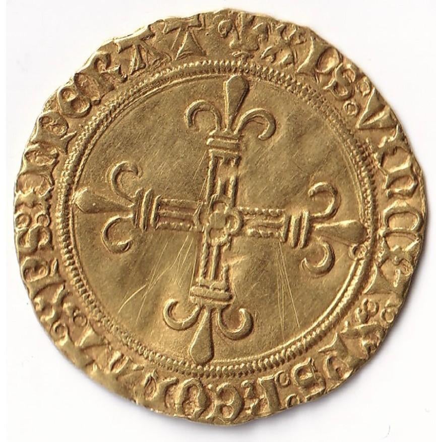 - Écu au soleil 3,4 grammes 23 carats - Charles VIIIBeau bouclier doré avec les initiales « croonnelles ». Recto : écu couronné de la france sous un soleil. Face arrière : croix avec lys. Une pièce royale prestigieuse et un véritable morceau de l'hEnlèvement ou Envoi