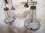 - Lampe à suspendre (2) - montgolfière - Laiton doré, LaitonDeux lustres en laiton et cristal, modèle mongolfiera, datant de 1950–1960 et originaires de lombardie, italie, avec des cadres ronds en laiton et des cascades de 496 et 207 prismes de cristal octogon