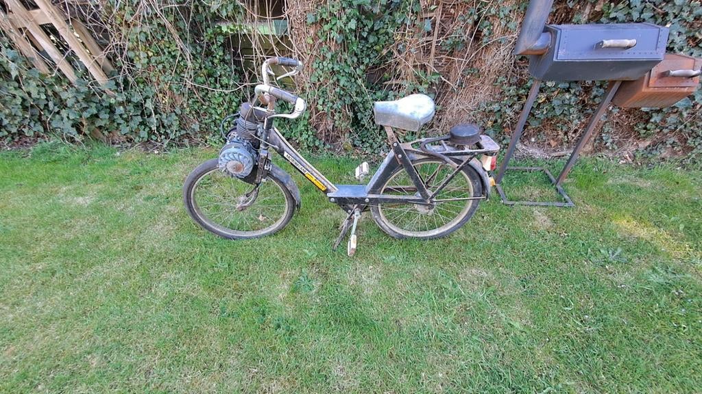 30 mars 26timNinove - Motobecane av43Motobecane av43 van 1961, model met de rolaandrijving. Weer op te starten na een paar jaar stilstand. Blokje is mooi los, maakt compressie en heeft ontsteking. Geen papieren.1961 Enlèvement