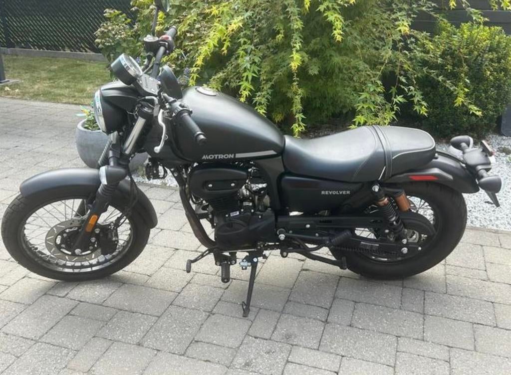 3 avr. 26Sepp Van royHove - motron revolver 125cc chopperTe koop : 2dehands moto merk : motron type :revolver kleur :mat zwart klasse :125cc motor : injection 4 takt lucht gekoeld opties: middenpoot remmen: cbs versnellingen: 5 starter: elektrisch verbruik:20222.712 km