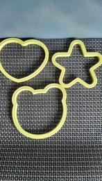 12 janv. 26VandeputteHarelbeke - Lot : Pelle à oeufs frits et 3 formes en silicone jauneL'ensemble se compose de 4 pièces : - 1 pelle à oeufs en forme d'oeuf sur le plat - 3 moules en silicone pour donner une jolie forme de poule, de vache ou de fleur à vos oeufs sur le plat! MatUtilisé Enlèvement ou Envoi