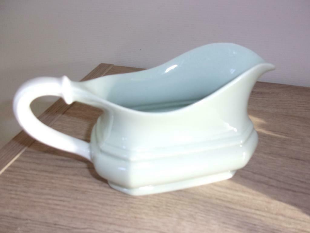 - jolie saucièreSaucière dans les tons vert pâle et poignée blanche, de forme assez moderne, état impeccable, 20 cm de long et 11 cm de haut; saucière ancienne "moulin des loups" à voir dans mes autres annoComme neuf Enlèvement ou Envoi