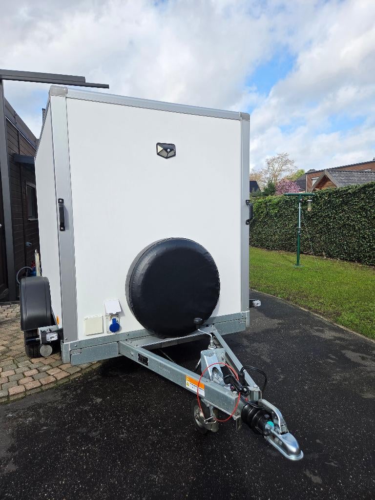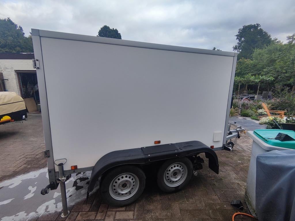 27 mars 26FikoHeusden - Gesloten aanhangwagen SARISGesloten aanhangwagen saris 1300 kg 250 lengte en 150 hoogte. Uitzonderlijk nieuwe staat. Ingericht, ideaal voor achter motorhome met rekken en fietsenrek. Mover met afstandbediening. Verschillende opComme neuf Enlèvement