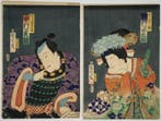 26 juil. 25charleyCouvin - Toyohara Kunichika – Kabuki-scène: Tomihime / SawamuraEen origineel diptych houtsnede van toyohara kunichika, uit de meiji-periode, met kabuki-scène tomihime en de acteurs sawamura tanosuke, sasaki tsabur en nakamura shikan; twee panelen, 375 x 500 cm, e