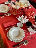 26 mars 26CatawikiToute la Belgique - Nappe imprimée exclusive avec des bancs en corail maritimeNappe exclusive imprimée de bancs de corail et d’animaux exotiques, mélange lin et coton, dimensions 270 x 180 cm, adaptée aux grandes tables, origine espagne, post-2020, en état quasi neuf.