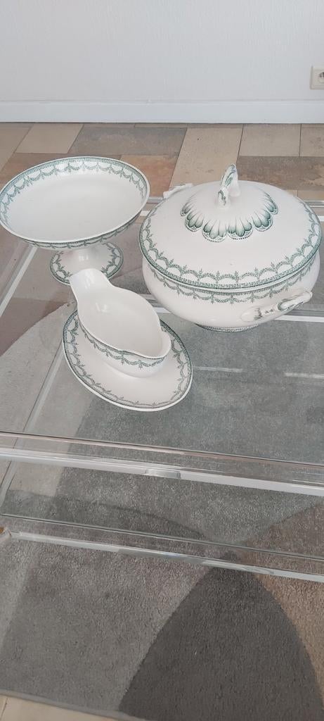 25 janv. 26Sermeus ValérieFleurus - Lot 3 pièces de service Boch Ney.Lot 3 pièces de service boch ney. 1 Plat sur pied diam 24cm, hauteur 13cm, 1 soupière doam 25, hauteur avec couvercle 25cm, 1 saucière. Le tout en bon état. A venir chercher sur auderghemEnlèvement