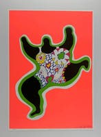 24 mars 26HERVE PIxelles - Niki De Saint-Phalle (1903-2002), after - Vive l amour -Niki de saint phalle (after), vive l'amour, een offsetdruk op papier van 40 × 30 cm, in uitstekende staat. Titel: niki de saint-phalle (1903-2002), after - vive l' amour - geschatte waarde: &e