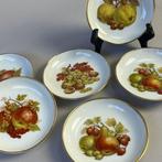 9 oct. 25sunnysideupTienenAucun bruitEnlèvementTienen9 oct. 25 - Plateau (6) - Fruits et bols à noix - Kaiser 1599 - environSix coupelles kaiser 1599 en porcelaine pour fruits et fruits à coque, allemagne, années 1940–1950, avec quatre motifs (pommes, poires, raisins et noix) et bord doré, dimensions environ 11,5 cm de dia