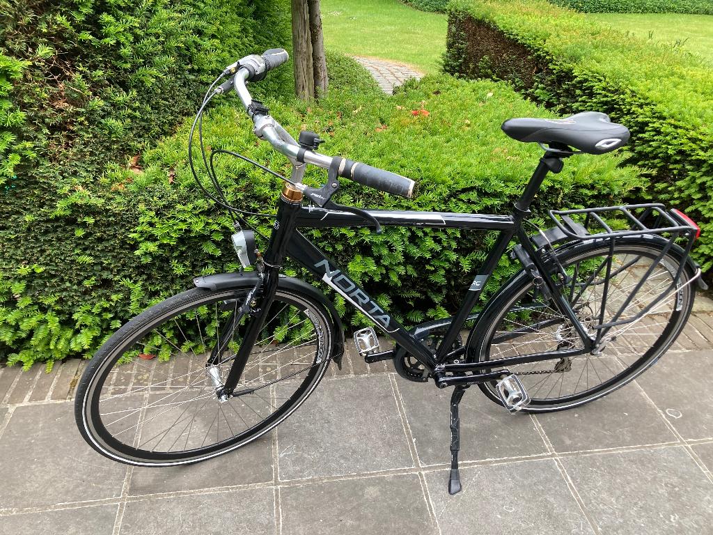 27 mars 26BenLier - Herenfiets NortaHerenfiets merk: norta 3 x 8 versnellingen verlichting verende voorvork fiets heeft net een volledig nazicht gehadUtilisé Enlèvement