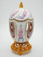 - Œuf Fabergé - Œuf musical en forme de cheval de carrousel deœuf musical en porcelaine représentant un cheval de carrousel, période estimée 1990–2000, environ 17 cm de haut et 9,5 cm de large, origine malaisie, modèle house of fabergé carousel horse musical egg