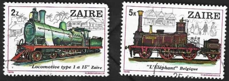 22 avr. 25seven lampsGent - 2 Postzegels Zaïre 1980 LocomotievenJaar 1980 maand 01 nominale waarde 5k volgnummer in uitgifte groep 3 „l’eléphant“, belgie nominale waarde 2z volgnummer in uitgifte groep 7 ontwerper/graveur bonnevalle, oscar [1920-1993]Affranchi Enlèvement ou Envoi