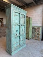 - Kast - Teak, mangoIndrukwekkende antieke rajasthani-kast – met de hand uitgehouwen – turkoois polychroom – voorzijde uit de 19e eeuween opvallende en zeer decoratieve kast afkomstig uit rajasthan, india, met een authen