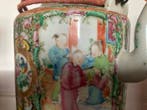 - Oude theepot van Cantonporselein, Rose Médaillon, eind XIXeGuangxu-tijdperk canton porseleinen theepot, rose medallion, eind 19e eeuw, 14 cm hoog, 12 cm diameter, 12 cm diepte, 700 g, in uitstekende staat met originele gedraaide metalen dubbele handgrepen met