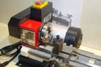 - Outils dhorlogerie Vintage - Petit tour à métauxTournette métallique vintage mini-tour à table en fer datant de 1990–2000, inutilisée et encore dans sa graisse d’usine, avec mandrin à trois mors et moteur deux vitesses, dimensions 45 × 25 × 25 cm,