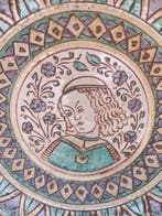 24 mai 25irinaMiddelkerke - Bord - Aardewerk - Grottaglie, XVIIe eeuw.Terracotta maiolika expositieschotel uit grottaglie (puglia), italië, uit de tweede helft van de 17e eeuw, in antieke stijl met de compendiario-stijl, diameter 43 cm, hoogte 6 cm, met lichte tekenen v