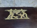 Aujourd'huiPub au topAction Belgium BVBAToute la Belgique - Centre de table - Laiton, Verre, BoisTable basse italienne de style mid-century modern des années 1950, avec plateau en verre et socle en bois ornés de laiton représentant une scène joyeuse d’un homme et d’une femme portant un grand pani