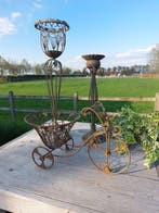 - Ornement décoratif (3) - Europe - décoration en ferTrois objets décoratifs en métal originaires d’europe et datant de 1980–1990, de couleur bronze, comprenant une petite chandelle ou lampe (47 cm de haut, ø 13 cm), une grande chandelle (62 cm de haut,