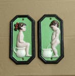 Aujourd'huiPub au topCatawikiToute la Belgique - Ornement décoratif (2) - Europe - Panneau de toilettes auUne plaque de toilette en fonte au style rétro pour hommes et femmes, en fonte durable, comprenant deux objets, mesurant 17 cm de haut, 8,5 cm de large et 1 cm de profondeur, en excellent état avec un