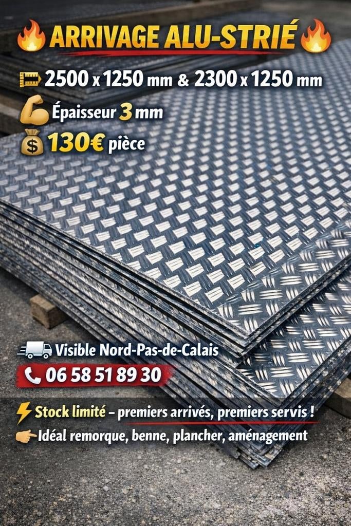 11 avr. 26Annonce au toppelser BVBASint-Katelijne-WaverNOUVEAUX PANNEAUX SANDWICH À DES PRIX DE DUMPINGNeuf P Enlèvement ou Envoi PCamion complet de nouveaux panneaux sandwich à des prix défiant toute concurrence ! ! ! ! Des panneaux sandwich de 1500 m2, d'une épaisseur de 4 cm, sont arrivés cette semaine dans différentes couleurs de gris et de blanc. Actuellement vendu à 14...Sint-Katelijne-WaverAnnonce au top11 avr. 26 - ARRIVAGE ALU-STRIÉ🔥 arrivage alu-strié 🔥 📏 2500x1250 mm & 2300x1250 mm 💪 épaisseur 3 mm 💰 130€ pièce 🚚 visible nord-pas-de-calais 📞 06 58 51 89 30 ⚡ stock limité – premiers arrivés, premiers servis ! 👉