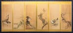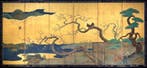 Aujourd'huiPub au topCatawikiToute la Belgique - Un paravent pliant à six panneaux de lécole KanParavent pliant six feuilles de l’école kan de l’époque edo, 170 cm de haut sur 373 cm de large, peint sur feuille d’or avec paysage riverain, bords en soie et cadre en bois laqué, en bon état avec ce