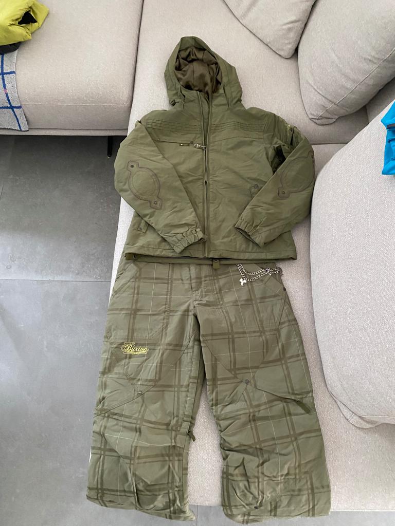 23 mars 26NickyAalst - Veste et pantalon de snowboardPantalon de snowboard burton kaki ensemble taille s avec chaîne amovibleComme neuf Enlèvement ou Envoi