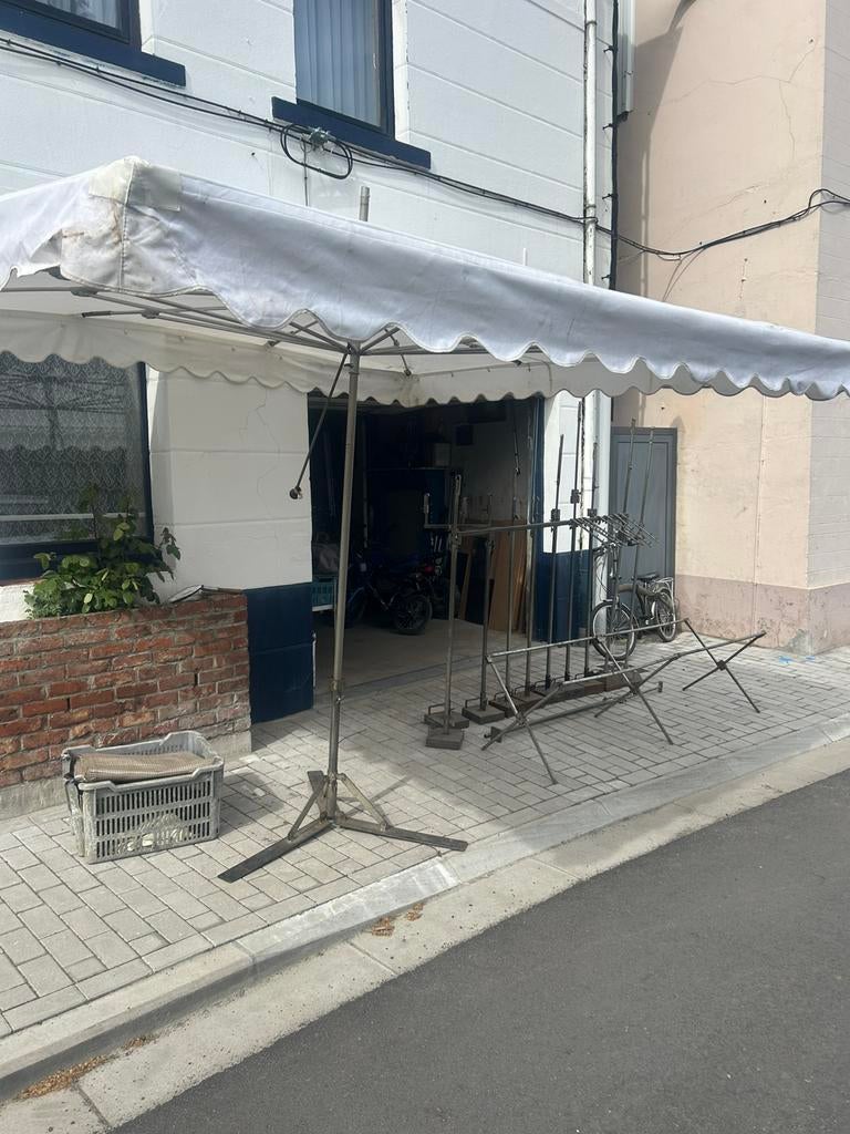 6 mars 26NicoEtterbeek - Parapluie de marché2 parapluies de marché 3 x 3 avec tout ce qui est sur les photos, ont été utilisés 2 ou 3 fois. 2 Pieds supplémentaires de vieux parasols sont également inclus câble d'extension de 50 mètres 10 foComme neuf Enlèvement